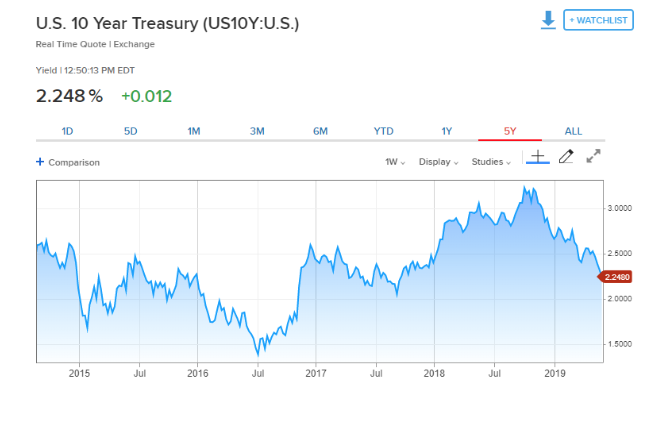 Is Bitcoin the new gold? The US-China trade war is evolving from tariffs to technology, It could be that Bitcoin is turning into the new gold. Meaning the ultimate hedge against inflation and bearish markets in the digital world. The digital currency has gained 132.69% YTD since the beginning of the year. Other major crypto currencies have followed suit. - Bonds: Ok, so bonds are the most interesting. But, should we worry about the message they are sending markets? Yields Are dropping everywhere. Which means demand is increasing. Fast.
