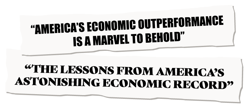 The American workforce has also grown exponentially since 1990, compared to other developed countries. The workforce also works more hours than counterparts in Western Europe and Japan, but with more effectiveness and higher efficiency. And this doesn't even take into account the low unemployment rate.