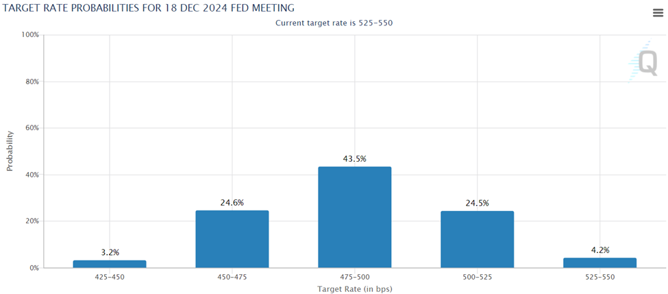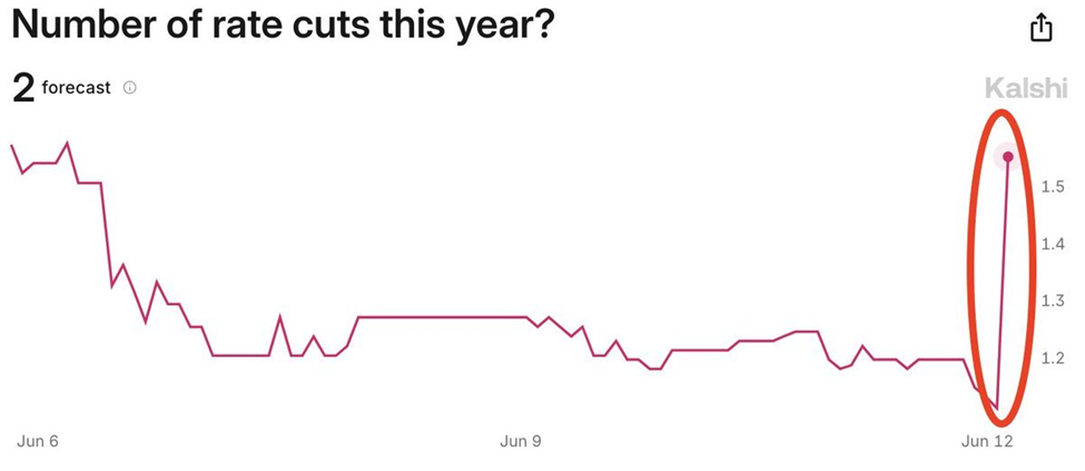 However, following the release of the new Dot Plot, the probability of a September cut has fallen to 61.7% (although they’re still clinging to two rate cuts come December).